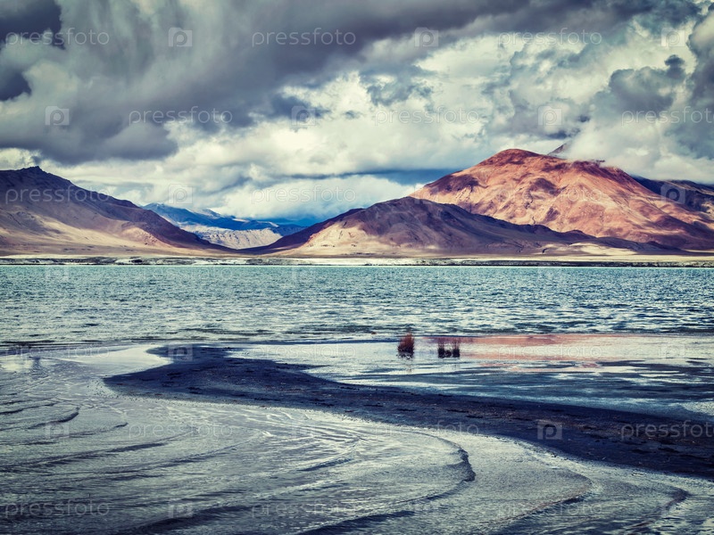 Винтажный ретро-эффект отфильтровал изображение хипстерского стиля Tso Kar - колеблющегося соленого озера mutane в Гималаях