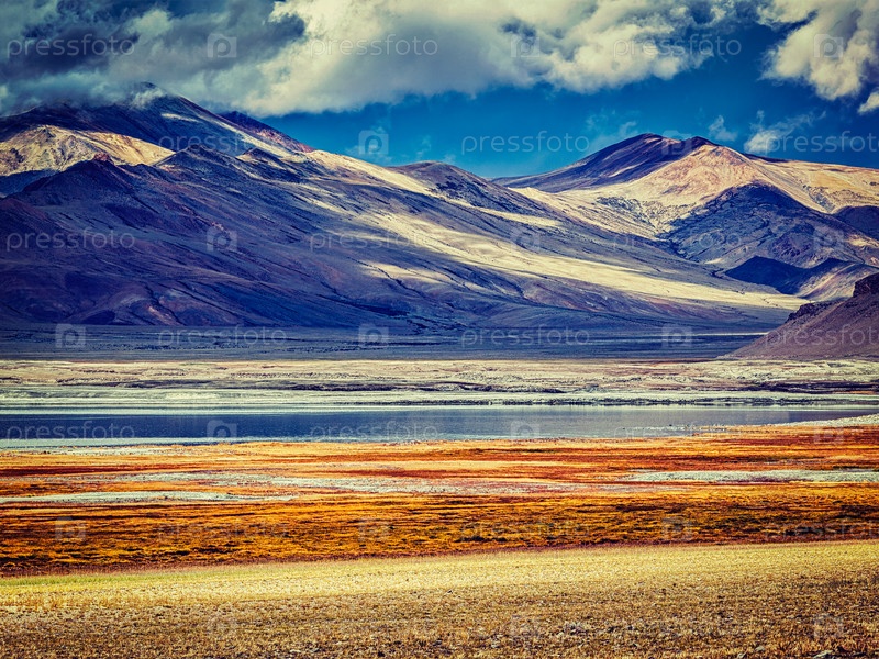 Винтажный ретро-эффект отфильтровал изображение хипстерского стиля Tso Kar - колеблющегося соленого озера mutane в Гималаях