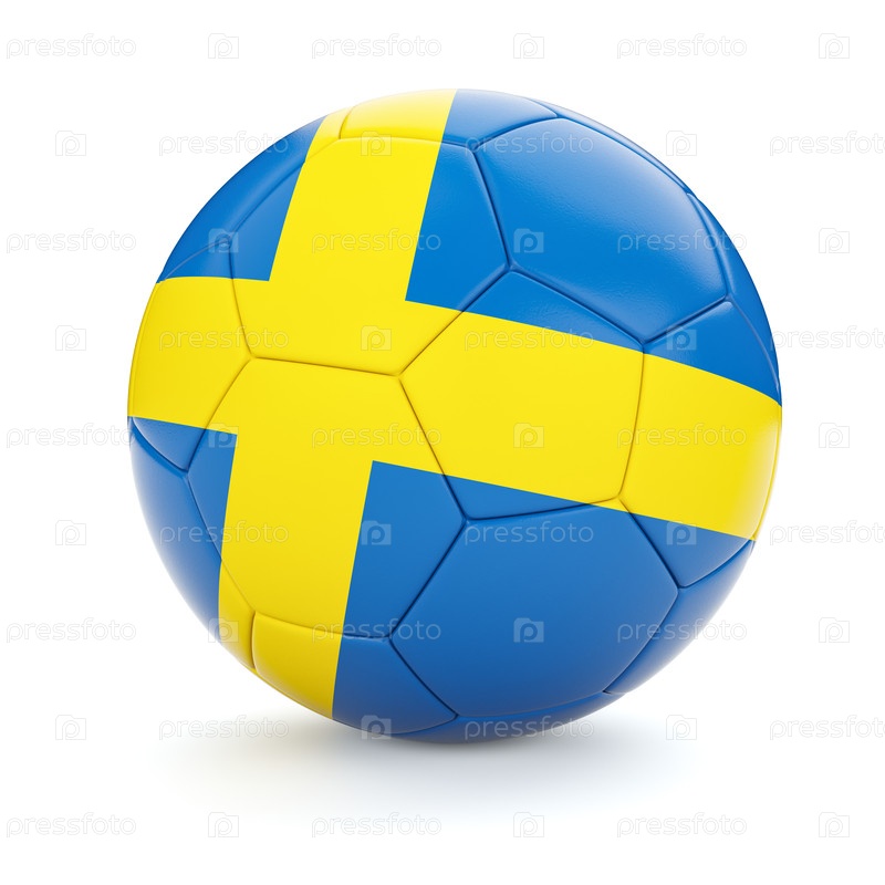 3D-рендеринг шведского футбола со шведским флагом на белом фоне