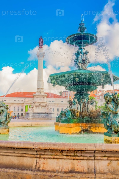 Площадь Россио в солнечный день, Лиссабон, Португалия
