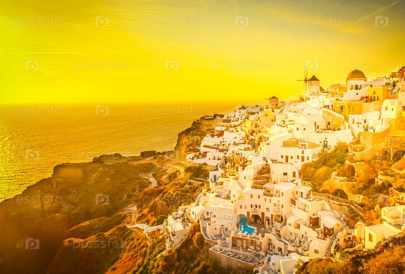 Знаменитый закат солнца Оя над островом Санторини и морем Эган, Santorini