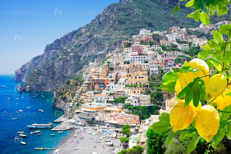 Вид на город Позитано летом - старый итальянский курорт, Италия