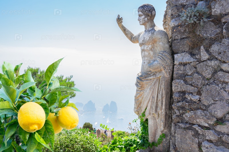 Вид с горы Соларо на острове Капри с местными лимонами