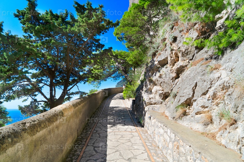 Через старинные лестницы Krupp в море, остров Капри, Италия