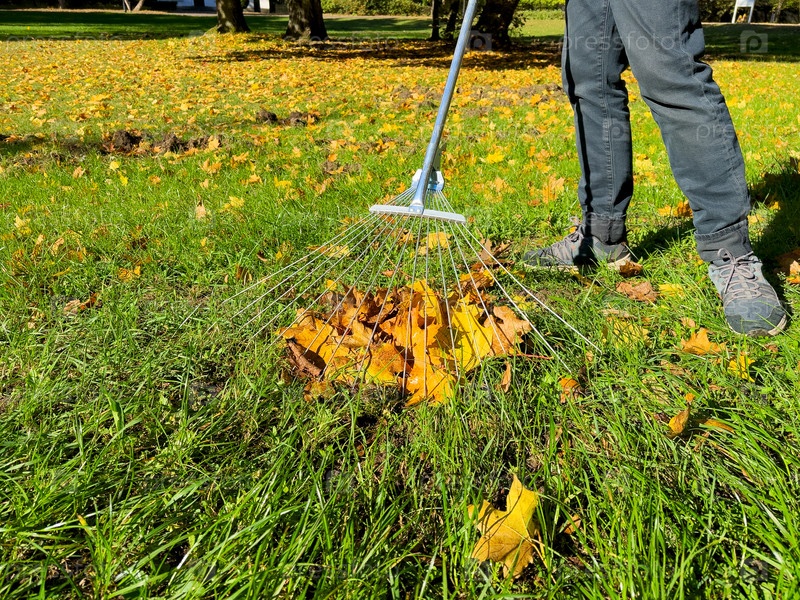 Осень оставляет чистые красивые желтые листья на пышной зеленой лужайке во дворе