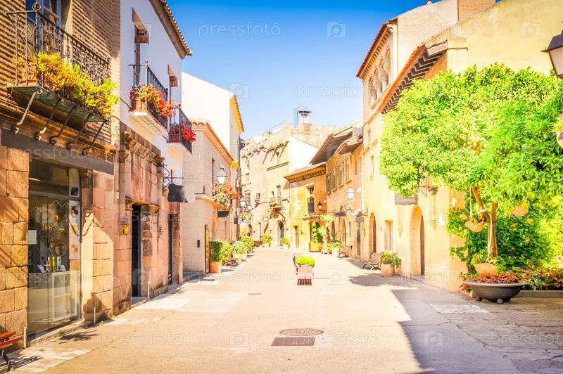 Poble Espanyol, знаменитая традиционная архитектура в Барселоне, Каталония, Испания