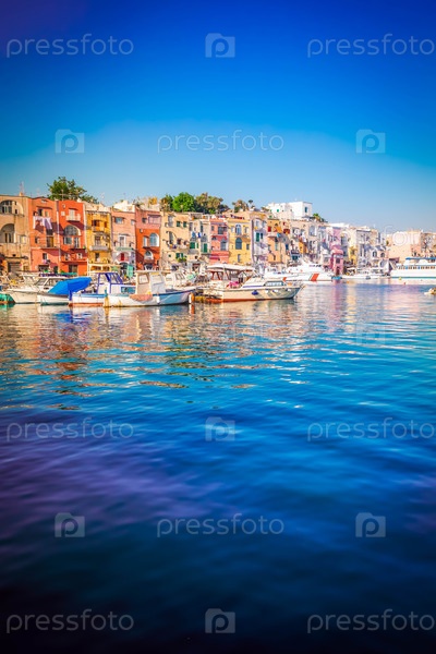 Порт Марина-Гранде с красочными старыми домами острова Просида, Италия