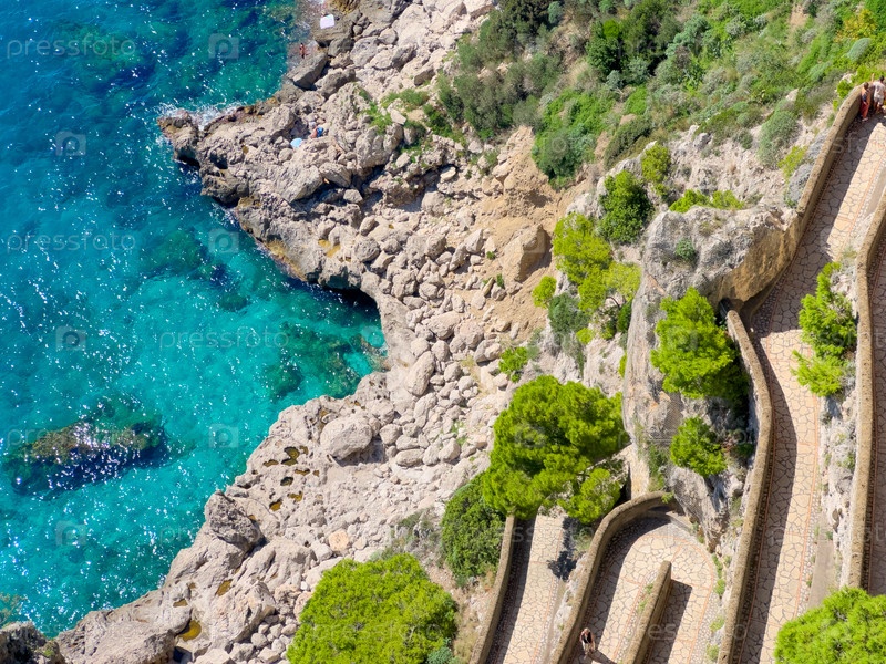 Через старинные лестницы Krupp в море, остров Капри, Италия