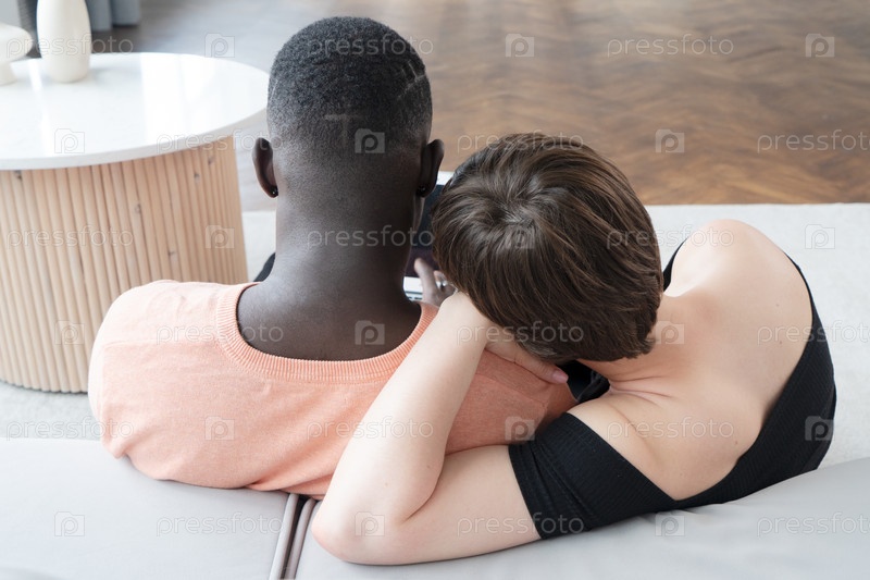 Молодая пара вместе смотрит на ноутбук