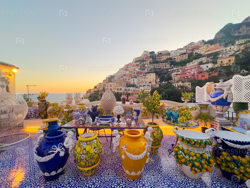 Позитановская бухта ночью - знаменитый старый итальянский курорт, Италия