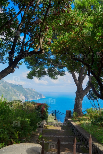 Фонтан в парке деревни Равельо, побережье Амальфи в Италии
