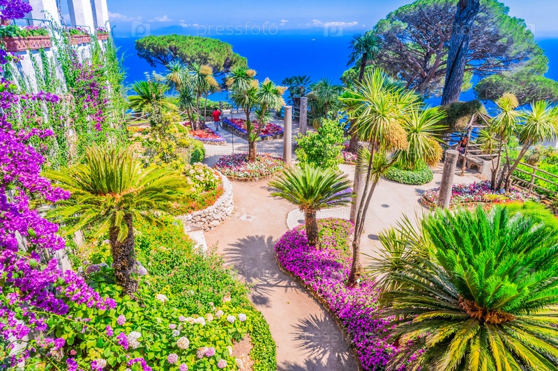 Летний пейзаж деревни Равельо, побережье Амальфи в Италии