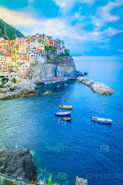 Живописный город Манарола на побережье Цинк-Терре, Италия