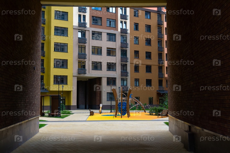 Детская площадка во дворе многоэтажного здания
