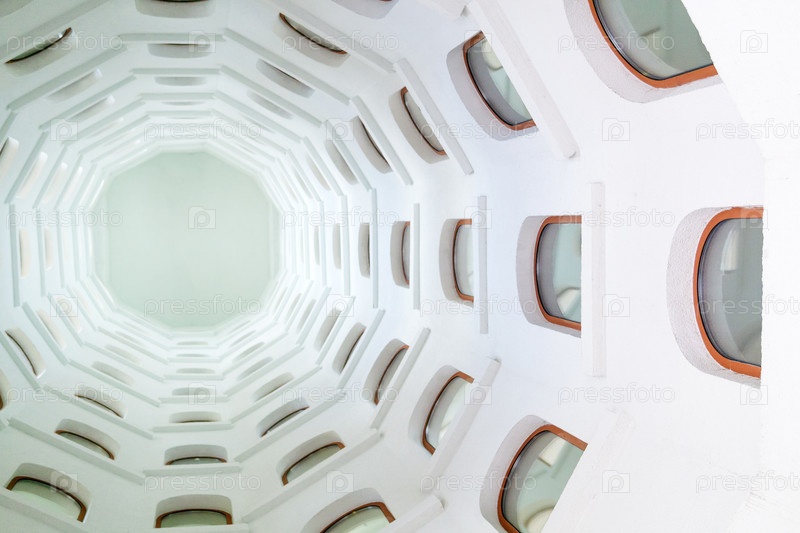 Архитектурный фон, спиральная лестница с окнами, открывающимися во внутреннее пространство