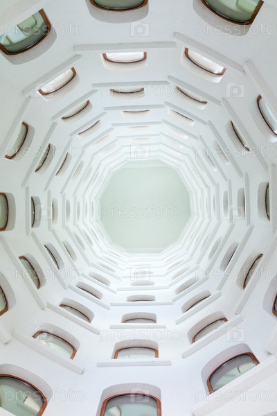 Архитектурный фон, спиральная лестница с окнами, открывающимися в люк под куполом
