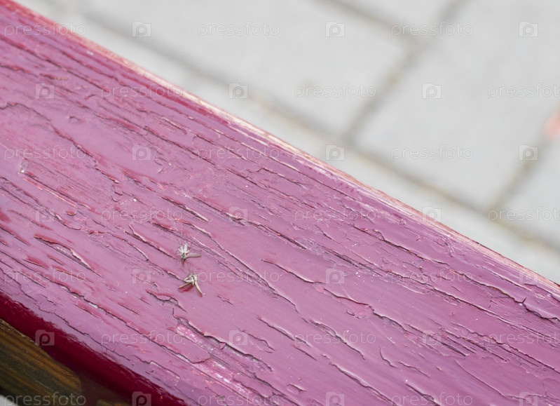 Два мертвых комара на деревянной скамейке