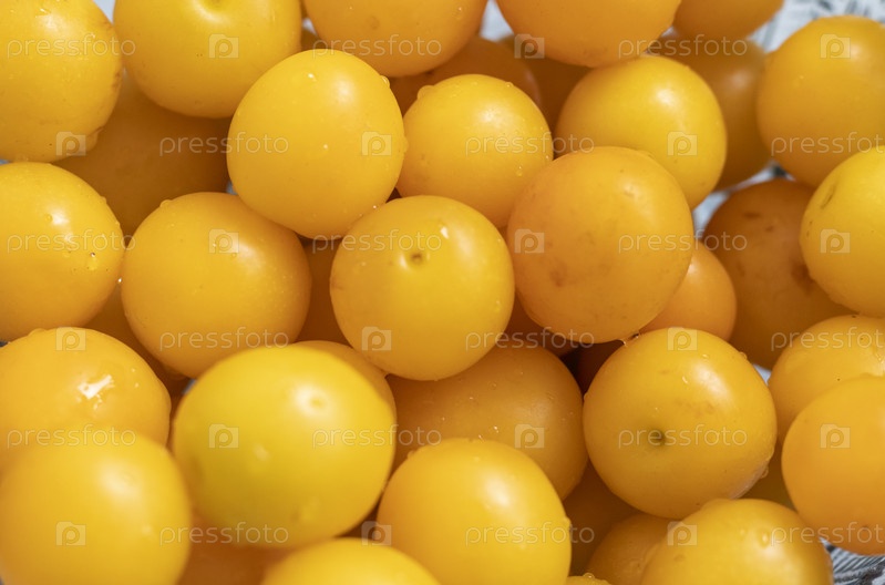 Желтая слива в декоративной вазе, Еда