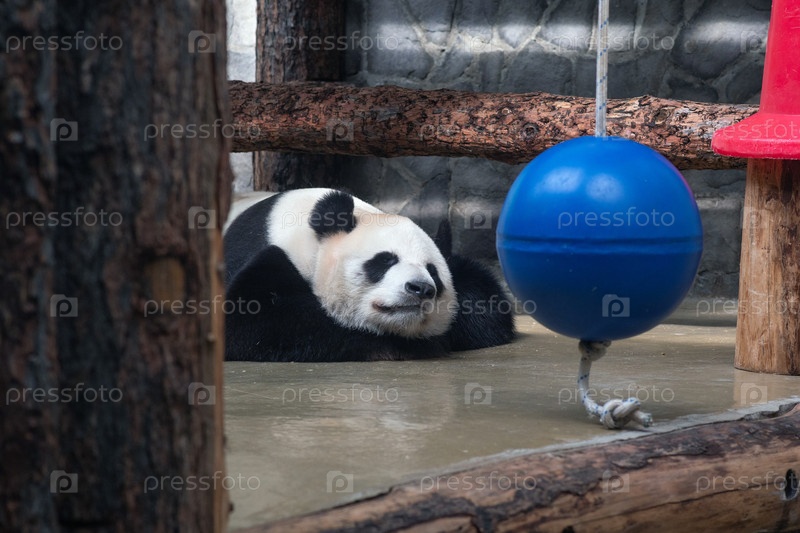 Гигантская панда отдыхает в зоопарке