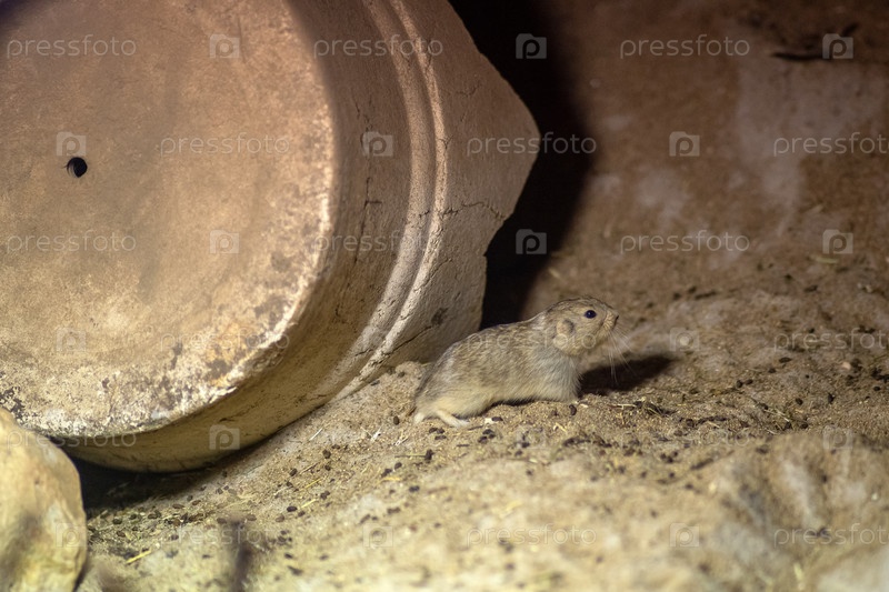 Небольшой грызун сидит на земле в зоопарке