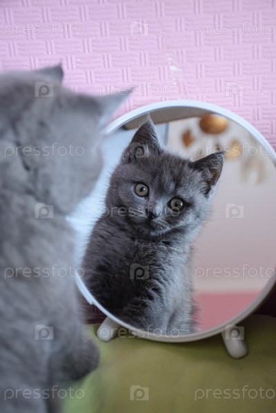 серый котик в зеркале