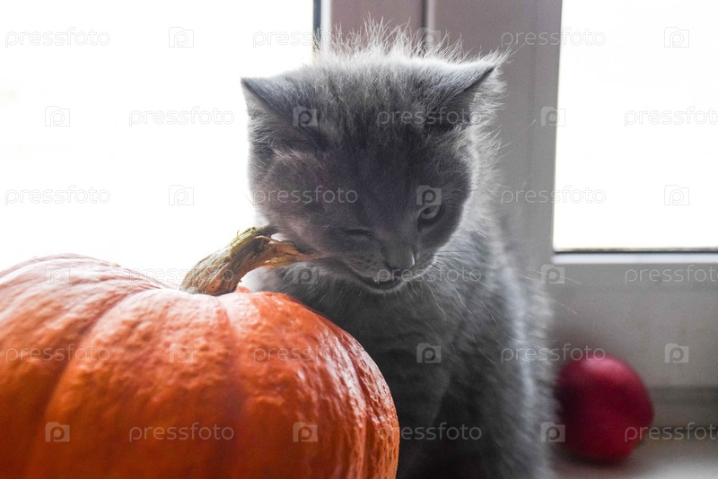 котенок кусает тыкву