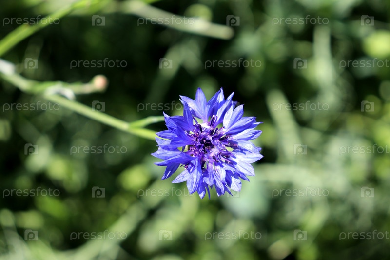 Один садовой голубой кукурузный цветок в солнечный летний день