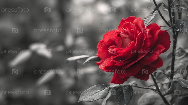 Красная роза с капельками воды