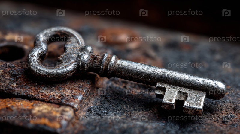 Древний ключ на поверхности ржавого металла