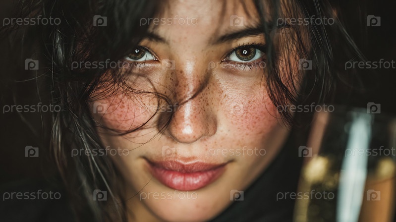 Красивая женщина с веснушками, крупный портрет