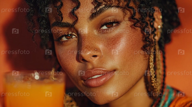 Близкий план красивой женщины с кудрявыми волосами