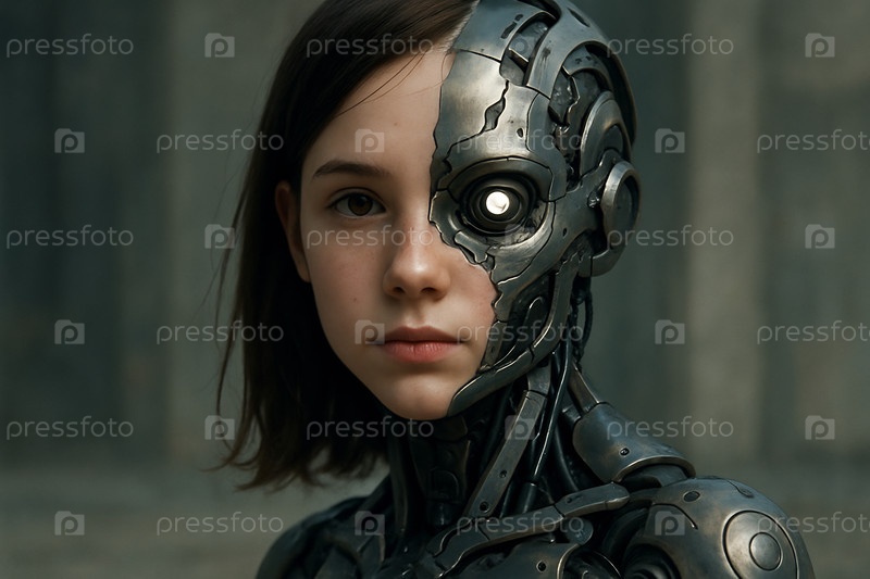 Потрясающе красивая киборг-девушка - наполовину человек, наполовину робот