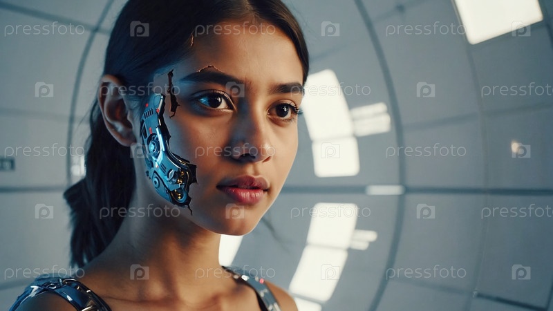 Потрясающе красивая киборг-девушка - наполовину человек, наполовину робот
