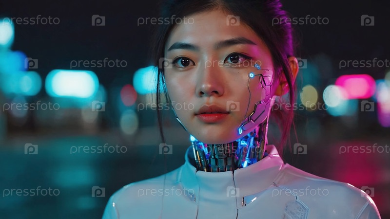 Потрясающе красивая киборг-девушка - наполовину человек, наполовину робот
