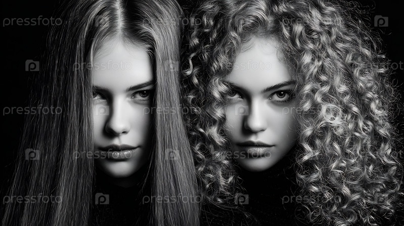 Два женских портрета с прямыми и кудрявыми волосами