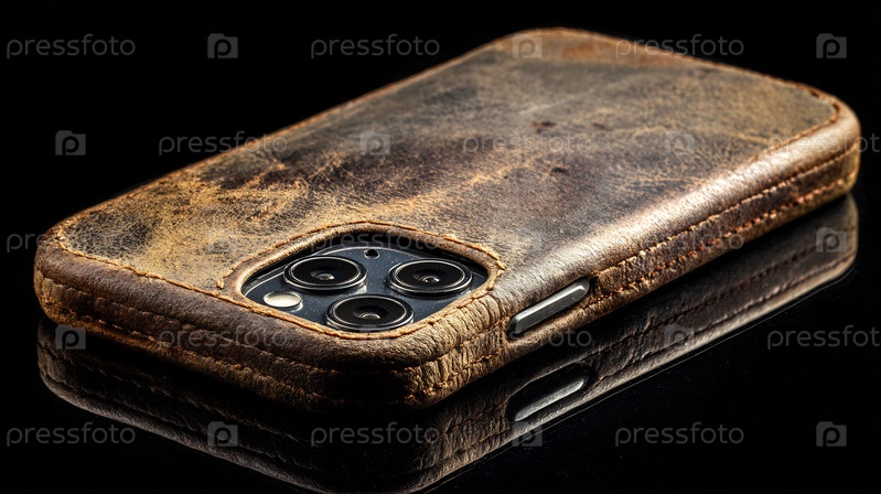 Закрытие деревенского, проблемного кожаного корпуса смартфона.Текстурированный коричневый материал для защиты телефона