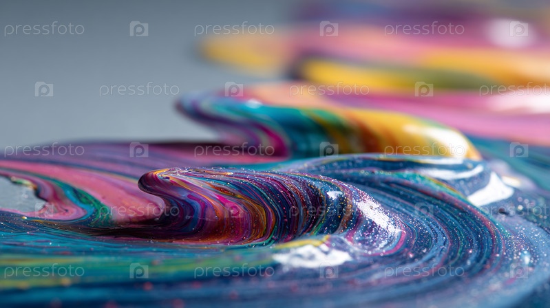 Макроснимки красочных, абстрактных цветовых волн с блестящими частицами