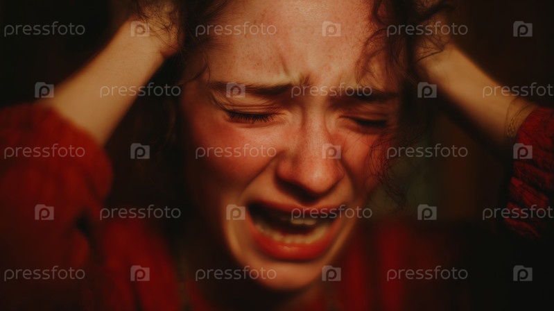 Близкий план кричащей молодой женщины, изображающей интенсивный эмоциональный стресс