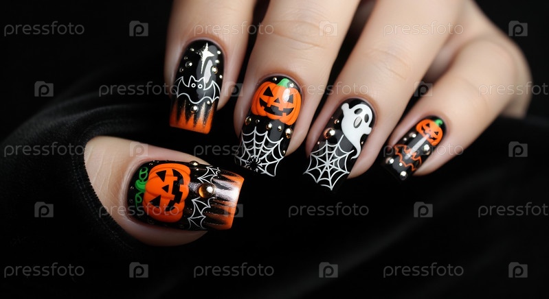 Творческое искусство ногтей Хэллоуина для празднования