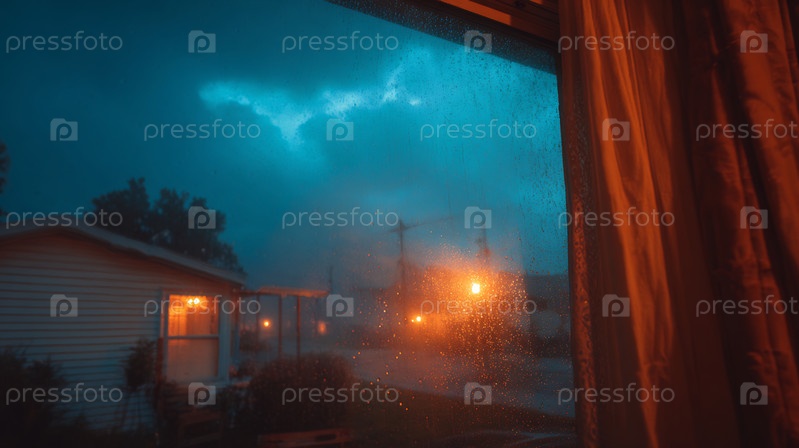 Выглядывая из окна в темную, бурную и дождливую ночь. капли воды на стакане