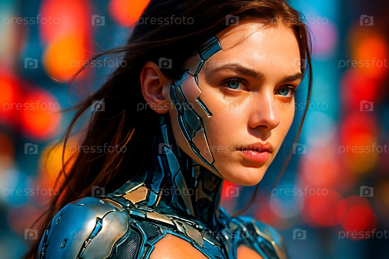 Девушка-киборг - это наполовину человек, наполовину робот.Андроид с голубыми глазами