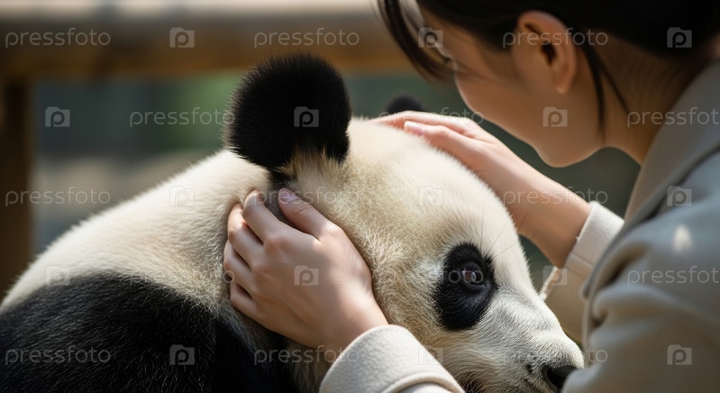 Женщина делает удар по гигантской панде с близкого расстояния