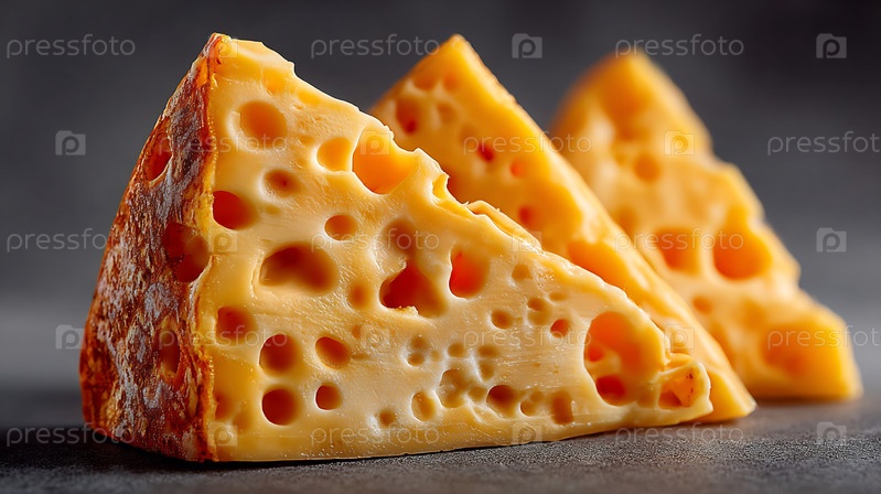 Детальный крупный план трех вкусных, протекающих кусочков сыра.Идеально подходит для проектов, связанных с едой