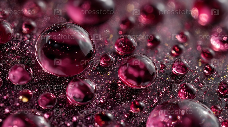 Яркие капли фиолетового цвета на темной текстурированной поверхности. абстрактный, красочный жидкий фон