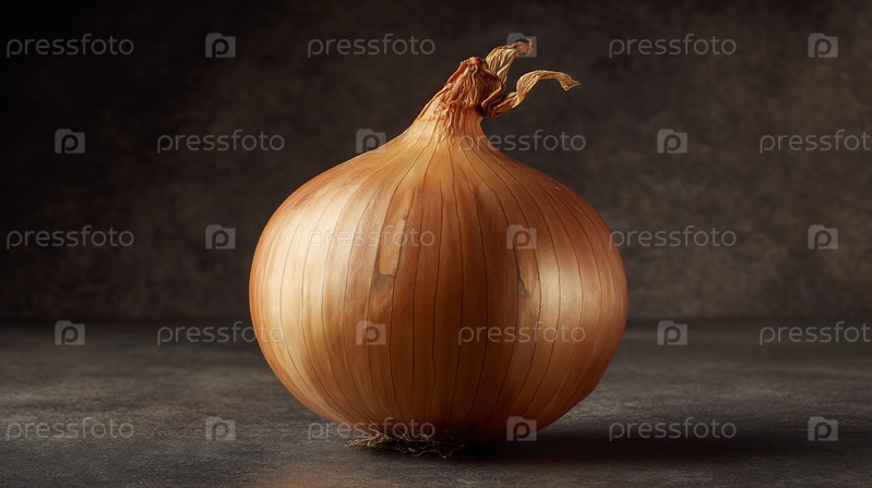 Один свежий золотисто-коричневый лук лежит на темной, деревенской текстурированной поверхности