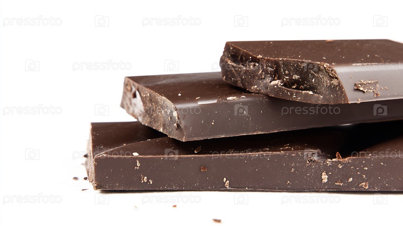 Вкусные кусочки темного шоколада изолированы