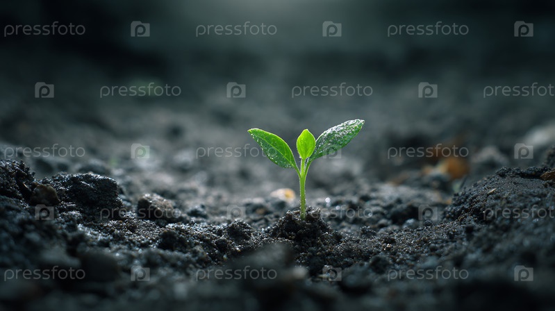 Крошечный зеленый побег, растущий из темной почвы