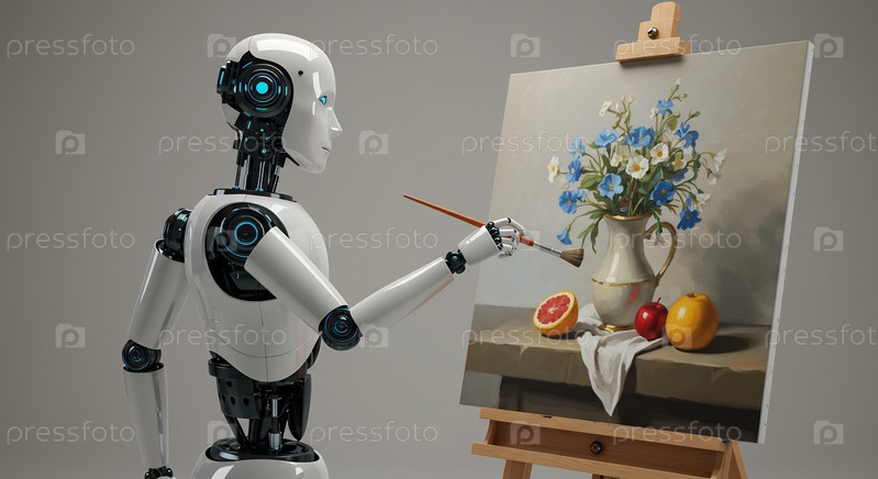 Робот рисует натюрморты - цветы и фрукты