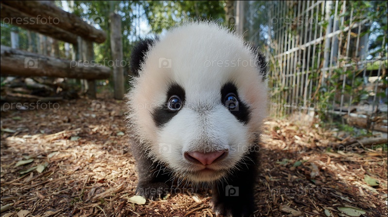 Близкий план очаровательного детеныша гигантской панды, стоящего на земле с нетерпением