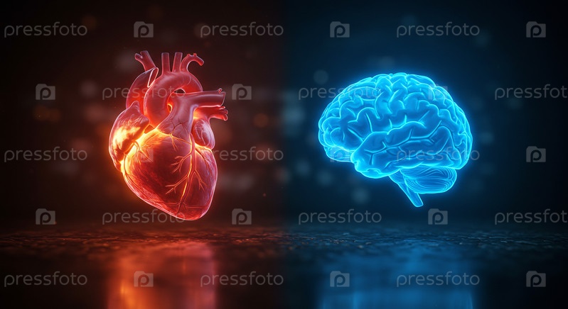 Человеческое сердце и мозг сияют в контрасте